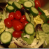 Lunch was the best salad ever, a mixing bowl filled with an entire heart of romaine, an entire avocado, a sprinkle of crumbled blue cheese, 15 grape tomatoes, 4 pieces of Morningstar veggie bacon, and an English cucumber. Topped with Frank’s hot sauce, this was enough to full me up until the Morton’s event which was close to 5 hours later.